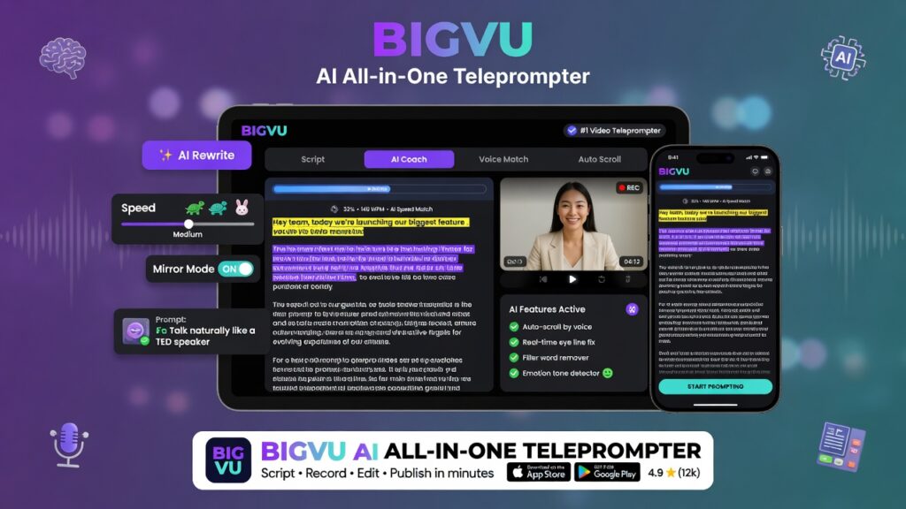 That’s where Bigvu comes in. It’s not just a teleprompter; it’s a full video marketing desk. Here is why this is the ultimate 2026 solution for your content: